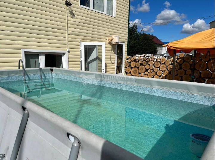 Есть веники, Беседка (Летняя веранда), Тапочки, Простыни, Полотенца, Халаты, Шампунь, Мыло, Мочалка, Посуда
